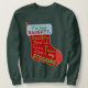 This funny Ugly Christmas sweater sweatshirt design with slightly bawdy connotations says, "I've been naughty, Santa. You'll have to take down my stocking." The words are written on the image of a holiday stocking. It's perfect, tacky humor for your Ugly Christmas Sweater Party.