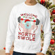 Santa Claus isn't messing around with the cookies anymore. This year, he's lifting weights instead of lifting glasses of milk. This funny Ugly Christmas Sweater shows a buff, shirtless Santa lifting a barbell in his gloved hands. He's surrounded by mistletoe and candy canes, and the text says "Welcome to the North Swole."