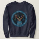Let's celebrate and have fun with this funny Ugly Christmas Sweater. Design features a drawing of a hilarious reindeer wearing a blue ugly Merry Christmas Sweater with tangled up Christmas lights in its antlers. Customize all text areas surrounding the medallion like drawing, on a blue knitted wool background.