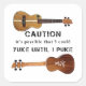 Funny Ukulele sticker, which reads: CAUTION it's possible that I could YUKE UNTIL I PUKE. The text is between two ukulele images, one is the front and the other is the back of the instrument. The image of the back is also a template for initials or name. The top image also has a small peace sign within the one of the sound ports. If you need a hilarious gift for a uke player, this will be sure to make them laugh.