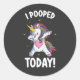 Funny Unicorn I Pooped Today Classic Round Sticker