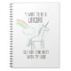 A spiral notebook with a funny unicorn illustration and a rainbow in the background. The text says: I want to be a Unicorn so I can stab idiots with my head.