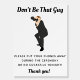 If you are having an unplugged ceremony but aren't sure how to tell wedding guests to put away their phones, this funny poster board sign will take care of it for you. The simple, neutral, minimalist design features black, calligraphy script and block lettering typography with the words "Don't Be That Guy. Please put your phones away during the ceremony or no cocktails tonights!" You can change the text to whatever you like best (maybe "cake" or "drinks" instead of "cocktails"). If you need assistance customizing this product or need additional matching products to be created, please contact me at admin@albamarie.com. I'd be happy to help!