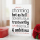 Make him smile this Valentine’s Day with this funny and romantic card featuring bold typography and playful compliments. Perfect for a husband who’s charming, hilarious, and adventurous — a heartfelt way to show love with humor.