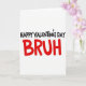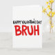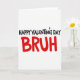 This greeting card keeps things simple with a white background and two lines of text that do all the talking. At the top, it says “HAPPY VALENTINE’S DAY” in black, hand-drawn script that looks a bit like marker. Right underneath, the word “BRUH” is much larger and printed in red block letters that really stand out. The red letters have a worn, speckled look with tiny white flecks, like a slightly faded print. There are no characters or objects—just the strong contrast between the classic greeting and the funny, casual “BRUH.” The overall feel is affectionate in a modern, teasing way, like a friend or partner joking around on Valentine’s Day ❤️💌🍫.