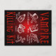 The image is a stylized illustration of a vampire killing kit. The words "VAMPIRE" and "KILLING KIT" are written in large, red, gothic-style font at the top and bottom, respectively. In between, there are six white outlined drawings of items traditionally used to kill vampires: a stake and mallet, a bible, a pistol with silver bullets, a bottle of holy water, garlic, and a cross. Perfect gift for Goths and vampire lovers.