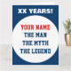 Very Big extra large oversized Birthday card for men. Personalized The man The myth The legend greeting card. Huge hmorous card idea for over the hill father, husband, dad, uncle, grandpa, brother, stepdad etc. Personalizable age and name. Customizable colors. Big extra large size. Humor slogan / quote in big letters. Masculine typography. Also cool for any high school team sports coach in basketball, baseball, tennis, soccer, softball, volleyball, hockey, rugby, lacross, swimming etc.