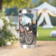 Thermal tumbler featuring a funny collage of vintage transportation images with a grandpa on a bike and cute mouse.
