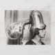 This postcard features a vintage 1928 photograph of a woman sitting under a rather funny hairdryer in a hair salon.