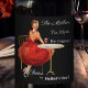 Wine label featuring your custom (funny or other) texts on a background color of your own choice with a vintage pin-up girl in a red dress with a glass of wine. Beautiful as a gift for Mother's Day as well as other occasions.