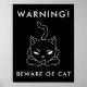Funny warning sign for cat owners! On a black background there is a logo style illustration of an angry looking black cat with white text that says "warning! beware of cat."