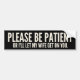 Give tailgaters a hilarious scare with this bold black-and-white "PLEASE BE PATIENT OR I'LL LET MY WIFE GET ON YOU" bumper sticker. Perfect for protective husbands, sarcastic commuters, newlyweds, anniversary gifts, or anyone whose wife is scarier than road rage. High-quality weatherproof vinyl, classic 11" × 3" size, easy peel-and-stick application that lasts years. Guaranteed to make the car behind you back off and laugh!