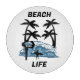A funny beach wave illustration and palm trees. Perfect for everyone, who loves surfing and being at the beach.
