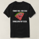 My 11 yo wore adult XL (5’7” 165#). The 8yo is small framed. She wore adult small and tied it in the back. Grandma wore adult large with long sleeve shirt underneath. Tall girl adult medium. Dark haired male adult large. Good quality dark Heather gray, Gildan brand shirt. -it was next up from basic choice and cost about $20 per shirt. Not too thick or thin. Washed and dried well, no major shrinkage. Not see-through. Can wear a bra under it fine. Screen print is just as shown and well done, front and back.