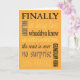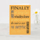 Funny wedding card for a couple who has been together a long time and finally getting married. Humorous sayings and phrases include: Finally, About Time, At Long Last, No Surprise, etc. Typographic design with words and phrases to add a little humor to your wedding congratulations card. Edit inside text if you like.
