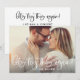 A playful wedding date change announcement featuring "Let's Try This Again" in breezy white calligraphy script overlaid on a full-bleed engagement photo. The light white text gives this version an airy, romantic feel while keeping the humor intact. Customize the names, new date, and all details on the coordinating back panel to notify guests of your rescheduled celebration.