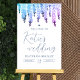 Fnny Wedding Welcome Sign Template Modern Floral Reception Ceremony Sign features elegant watercolor blue and purple flowers on a white background with your wedding welcome sign in elegant handwritten calligraphy script typography accented with a simple love heart. Perfect for the entrance to your wedding ceremony or reception. Designed for you by ©Evco Studio www.zazzle.com/store/evcostudio