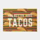 As a society, often forget about doormats and usually settle for plain and boring ones. You know, those that you see on sale in a supermarket. But that’s not how you ought to live your life. Doormats can be astonishingly hilarious, with cool puns and funny quotes. They can make you smile every time you go in and out of your home. They also have the power to surprise your visitors or get them in a better mood before entering. Let everyone know that they best not be knocking on your door without some tacos!!! Add your custom wording to this design by using the "Edit this design template" boxes on the right hand side of the item, or click the blue "Customize it" button to arrange the text, change the fonts and colours and to also add additional information or images to this design. If you need any coordinating items, (thank you cards, etc.) please contact me for a custom order.