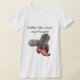 My overall review is that the T-shirt is nice, it fits true to size however the font is significantly smaller than advertised and you can't read it. The printing is unreadable and there is a strain to read it. It does not look like the advertised product. Maybe the shirt color is darker or a larger more visible font should have been used. Photos with and without flash and font is barely legible.