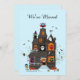 Change of address card shows "We've Moved" above a haunted house full of Halloween characters, including a vampire, witch, ghost, devil, mummy, grim reaper, monster, and pumpkins. Customize the new address and details on the back of the card.