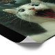 Funny White Cat Selfie With T-rex Dinosaur, Cat Ki Poster