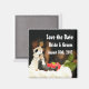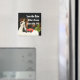 This funny save the date magnet shows a cake topper of a wife dragging the husband.
