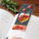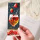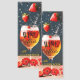Whimsical funny bookmark featuring a glass of wine with flying strawberries.