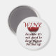 A glass of wine with the text "Wine- because it's not good to keep things bottled up" on a funny kitchen magnet.