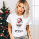 Infuse your Holiday wardrobe with a touch of humor and witty elegance this season. Our women's Christmas t-shirt, adorned with a cheery watercolor illustration of a festive wine glass, carries the hilarious quote - 'Dreaming of a wine Christmas'. Perfect for those who love a good laugh and a great glass of wine. Elevate your festive spirit, and let the merriment begin, one sip at a time!