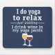 A little drinking humor that you can pass on to your wine loving girlfriends. Make them laugh with this humorous gag gift or white elephant. I do yoga to relax - just kidding - I drink wine in my yoga pants.