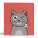 Cute cat kids design with a vector illustration of a grey cartoon kitty with sharp teeth winking, smiling and nibbling on a little flower. This cute kitty cat design will make a great gift for a girl who loves cats.