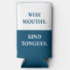 Funny "Wise Mouths. Kind Tongues." Blue & White Seltzer Can Cooler