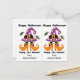 This cute Halloween postcard is designed to be easily cut into two cards. The image is of a star decorated witch hat with striped stockings and gold shoes. A few funny bats fly around. The black text above says "Happy Halloween", and below "Enjoy the Haunt" with your signature. Perfect for elementary or pre-school students to give to their friends at their school Halloween party, and economical, too! And teachers can also customize it to give out to students!