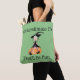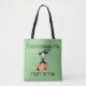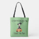 This Funny Halloween Tote Bag features my silly witch sitting on a pumpkin with the text Underestimate me that'll be fun!