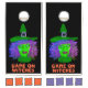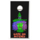 Funny Witch Saying Halloween Party Cornhole Set is a great way to entertain guests at your spook party. Both boards have customizable black background with funny phrase "Game On Witches" in large orange typography. A big neon green witch face is centered on each board and she has bright purple hair and big spooky eyes. Customize with your very own text and colors if you wish.