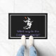 Cute and funny "Witch Way" Halloween doormat. Witch and orange moon graphics. Purple text for the saying is "Witch way to the Halloween candy?" Fun and funny!