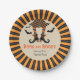 A whimsical Halloween party paper plate featuring a witch's legs and bats and an orange and black striped pattern with added text that you can personalize with your name(s), party location, or other desired text. The cute witch's graphic is original artwork©delightful-doodles.com. Please note, this paper plate is available in 2 sizes. Review the product information shown below and choose the size that best suits your needs.
