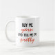 Joke mug for those who crochet and knit. "Buy me yarn and tell me I'm pretty" script.