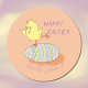 Cute and funny yellow chick on top of a decorated egg Easter stickers . Ideal to use as envelope seals or as decals on gifts . Personalize them with your family's name .