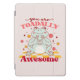 I was super excited when I got my cover in. It is attached by a magnet across the edge. I don’t think it will be very protective but it is very cute. I’m going to keep my iPad in a sleeve and use this face cover while I have it out. It folds to create a tilt for better viewing and to keep the iPad at a slight angle for typing. The colors are bright and it is fun. I’ve really enjoyed it. The personalization looks like amazing. It is the same color as the picture and is the same brightness. Well done! Very nice.