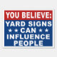 Add a humorous twist to your yard with our 'Funny You Believe Yard Signs Can Influence People' Sign! Perfect for making a playful statement and sparking laughter in your neighborhood.