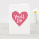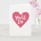 This greeting card features a large fuchsia-pink heart centered on a soft cream background. The heart has a slightly rough, painted look with tiny specks and imperfect edges that make it feel warm and real. Small pink hearts and little paint-like dots float around it, adding a light, sweet touch. In the middle of the big heart, the words “You’ll Do” appear in white cursive-style lettering that looks like it was written with a brush. The text sits right at the center and stands out clearly against the pink. The overall look is simple and funny in a gentle way, like an honest note to someone you care about 💘😘. It feels perfect for a partner or close friend who gets your sense of humor ❤️.