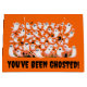 Whoa! That's going to be a whole lotta candy! If you find Hallowe'en to be one of the most fun-filled days of the year, then this whimsical oversized gift bag, which features the punny observation "You've Been Ghosted!" styled in a creepy font in white with cute AI-generated crowd of ghosts celebrating their big night on a pumpkin orange background--is a great way to say trick or treat at the door on the spookiest time of the year (and use a real groaner)!