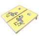Natural Wood Cornhole Set, Yellow and Purple bags