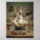 A humorous chicken sits cross-legged in a pan, striking a calm meditation pose while surrounded by a cozy kitchen setting. Wearing glasses and exuding peaceful energy, the scene blends absurdity with serenity. Warm lighting and detailed surroundings create a playful contrast, turning an everyday cooking moment into a quirky, imaginative visual story.