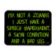 Everywhere you go, people tell you, "You look like a zombie." And that's bad because if the undead actually take over the planet, you'll be mistaken for one of them. But not if you're displaying this life-saving design. It explains the truth to any would-be zombie hunters: I'm Not a Zombie. I Just have a Speech Impediment, a Skin Condition and a Bad Leg. The text is mottled green, like zombie flesh. It's funny for Halloween or all year. Be prepared when the outbreak happens. See the design on more products under "Halloween" in our store.