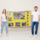 Here's a collage featuring your beloved pet! At the top center, there's a large photo of your furry friend. Surrounding it is an L-shaped arrangement of smaller pictures. To the right, you'll find your pet's name. You can easily change the background color by clicking 'Customize' and selecting your preferred shade.