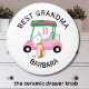 To the BEST GRANDMA -- A charming unique golf cart -- pink and green -- tastefully done -- ready to run the course -- golf ball --This is a great gift for all golf lovers -- fun / attractive / unique. Personalize it with your/her initials/monogram AND first name. If you have any design questions or a special request, please send an email to: charmdesignstudio@rcn.com