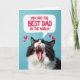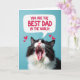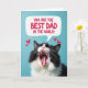 This card shows a fluffy black-and-white house cat front and center, caught mid-meow with its mouth open wide, pink tongue showing, and small teeth visible as if calling out to a beloved dad 👨. Long white whiskers fan out from its muzzle, giving the face extra energy and a teasing, affectionate feel. Near the top, a rounded white speech bubble holds the message “YOU ARE THE BEST DAD IN THE WORLD!” in thick crimson lettering. A few small red hearts hover around the cat’s head, like little signals of fondness and close family warmth. The background is a smooth blue-green field that makes the black fur, white fur, and red accents stand out clearly. Bright lighting adds shine to the fur and makes the red text and hearts look more intense, like a cheerful shout of appreciation 🛠️. The cat’s eyes, whiskers, and open mouth are sharply detailed against the flat blue-green backdrop, with the white speech bubble sitting above and the red hearts scattered nearby.