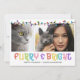 This festive photo Christmas card features a string of holiday lights, 2 photos of you and your sweet cat(s) or just your cat(s) on the front with the words, "Furry & Bright", and signed Merry Christmas with your family name. The font is happy and joyful in bright rainbow colors. It is so easy to make this card your own. Simply select Personalize this template, type in your family name and upload your favorite photos. It's super easy!